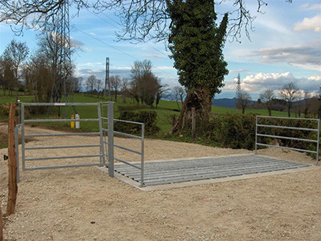 Passage Canadien permettant le libre franchissement des véhicules (3.5T à 48T) en maintenant les animaux parqués ou en évitant leur intrusion.